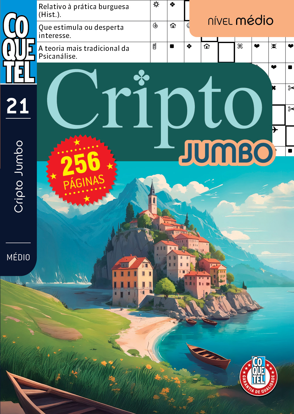 Coquetel Jumbo Cripto Nível Médio Ed 21 convida os entusiastas de desafios intelectuais a decifrarem mensagens codificadas em um mundo fascinante de criptogramas.