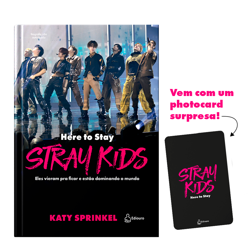 Mais que idolos, eles são artistas completos. Conheça o grupo que domina as paradas de sucesso com seu estilo único, potente e autêntico. Nesta obra, a escritora Katy Sprinkel guia o leitor pela história do Stray Kids desde seus primeiros passos até o estrelato. Ela explora a trajetória do grupo, incluindo perfis dos membros e detalhes dos álbuns, além de apresentar curiosidades sobre o K-pop e suas diferentes gerações. Tudo isso ganha vida em cada página. Esta edição brasileira inclui ainda atividades interativas exclusivas pensadas especialmente para o fandom! Stray Kids – Here to Stay é o guia essencial para todo STAY e para quem deseja conhecer mais sobre um dos maiores nomes do K-pop atual.
