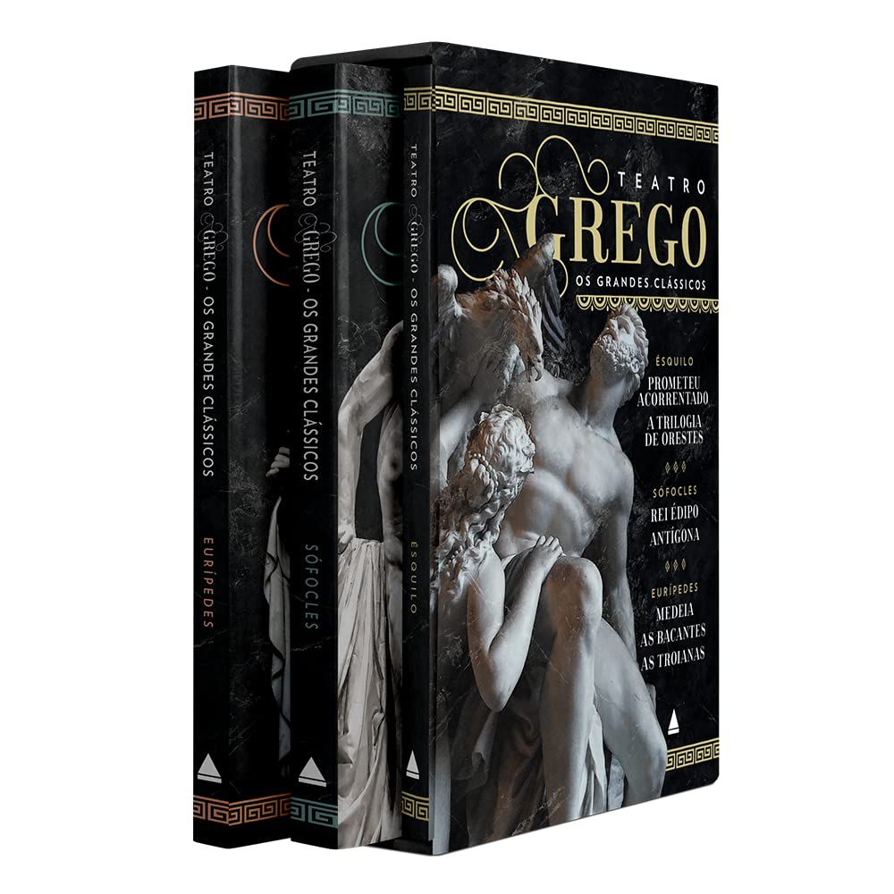 Os volumes reunidos neste box trazem as maiores obras clássicas do teatro grego. São peças escritas pelos três mais importantes dramaturgos trágicos mundialmente reconhecidos: Ésquilo, Sófocles e Eurípedes, que não apenas consolidaram um gênero, mas ofereceram ao mundo os grandes mitos com os quais até hoje os indivíduos encontram identificação. Prometeu acorrentado e A trilogia de Orestes; Rei Édipo e Antígona; Medeia, As bacantes e As troianas: eis aqui os textos fundamentais para o conhecimento da tragédia grega e da psique humana.